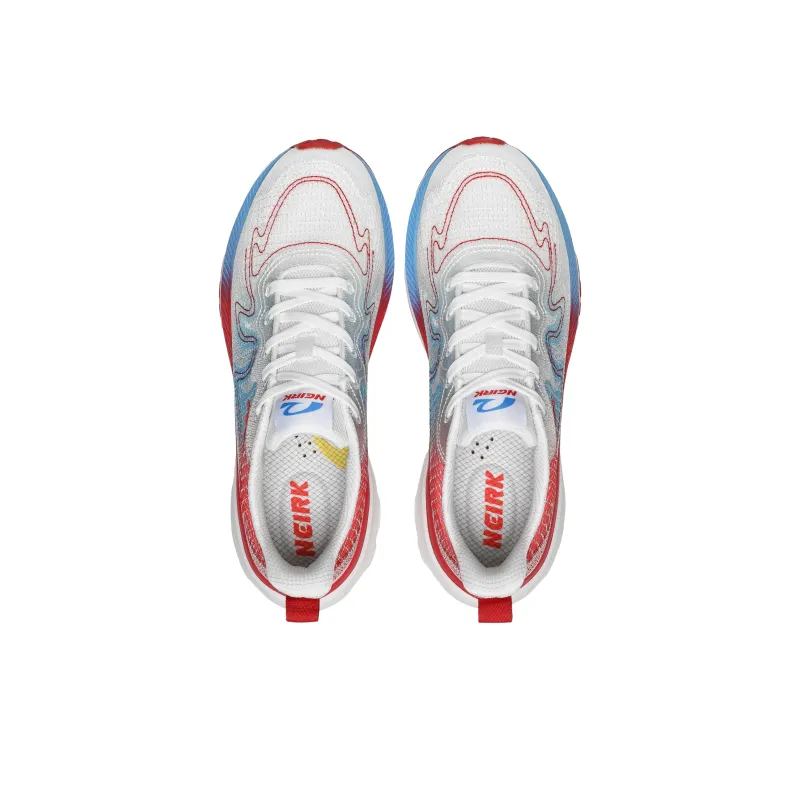 Neirk Slip-resistant Abrasion-resistant Breathable Low-Top Running Shoes Unisex White Red Blue