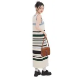 NEMOWU Без рукавов Платье Женское Абрикосовые Полосы