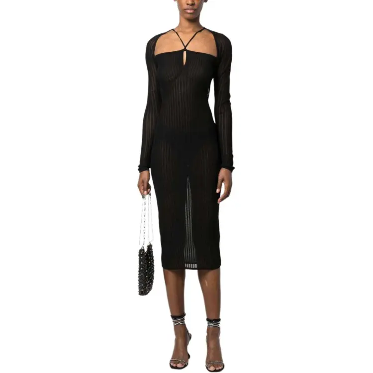 Nensi Dojaka Длинное платье с длинными рукавами женское черное