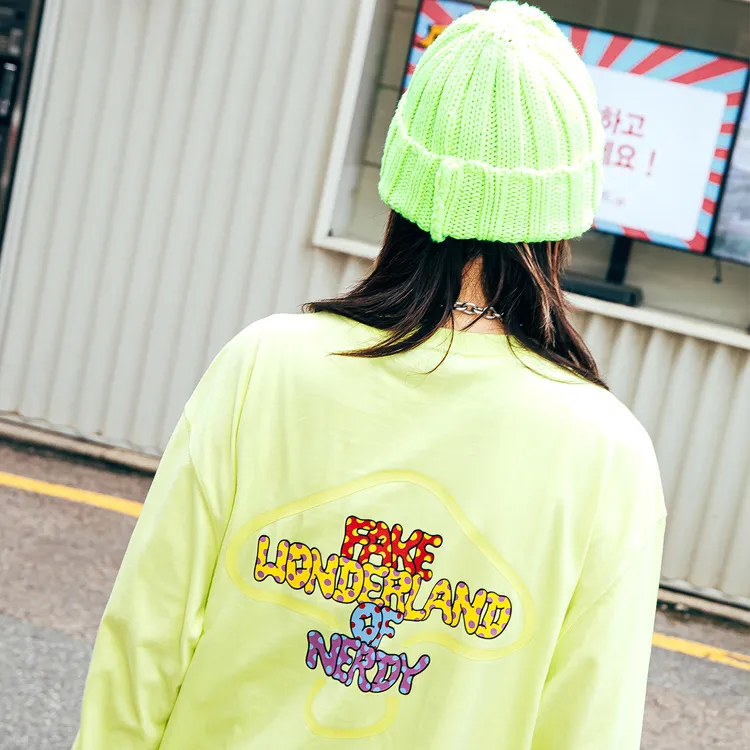 NERDY Прямой крой Длинный рукав Т-рубашка Унисекс Неоново-зеленый