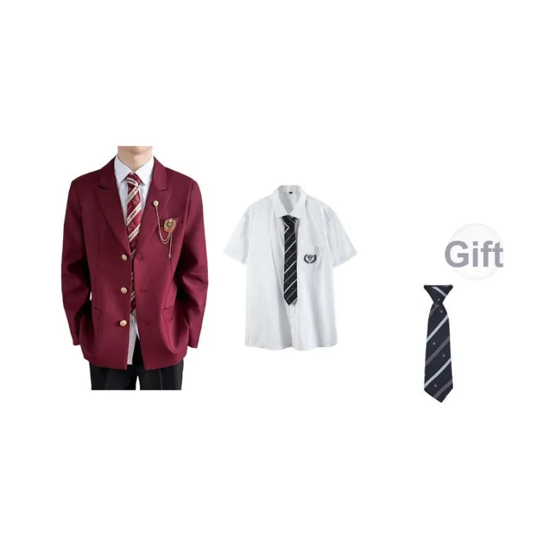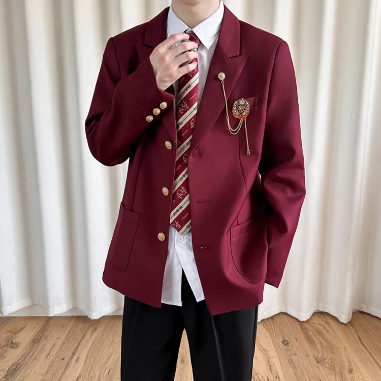 Red Coat + White Shirt + Black Suit Pants [Free Tie]