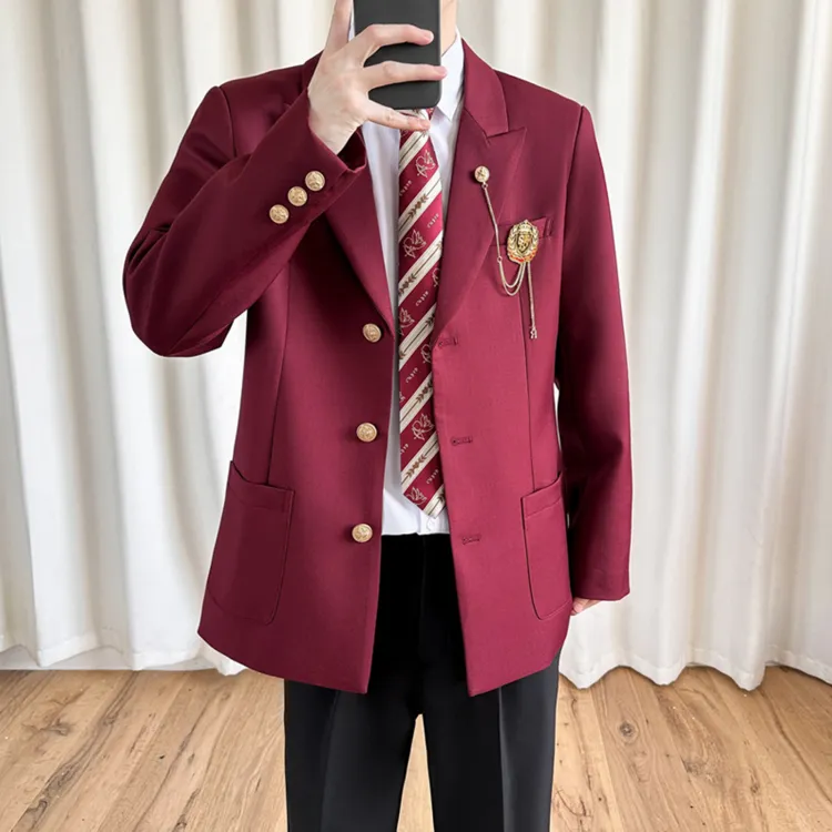 Красный пальто + Белая рубашка + Черные костюмные брюки [Бесплатный галстук]