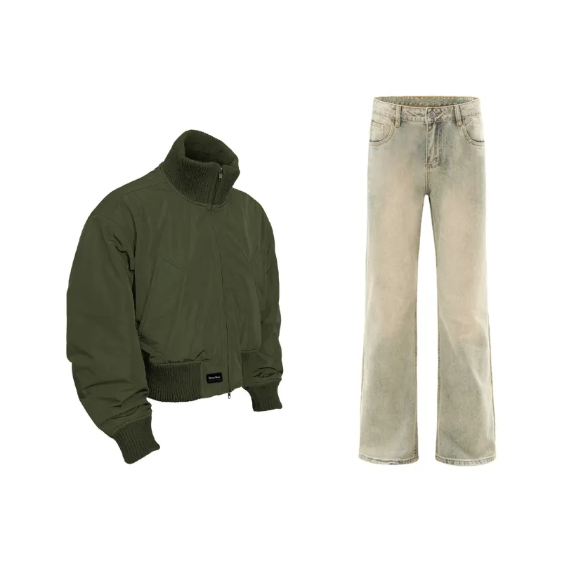 Цвет:Зеленая куртка + желтые грязные джинсы
