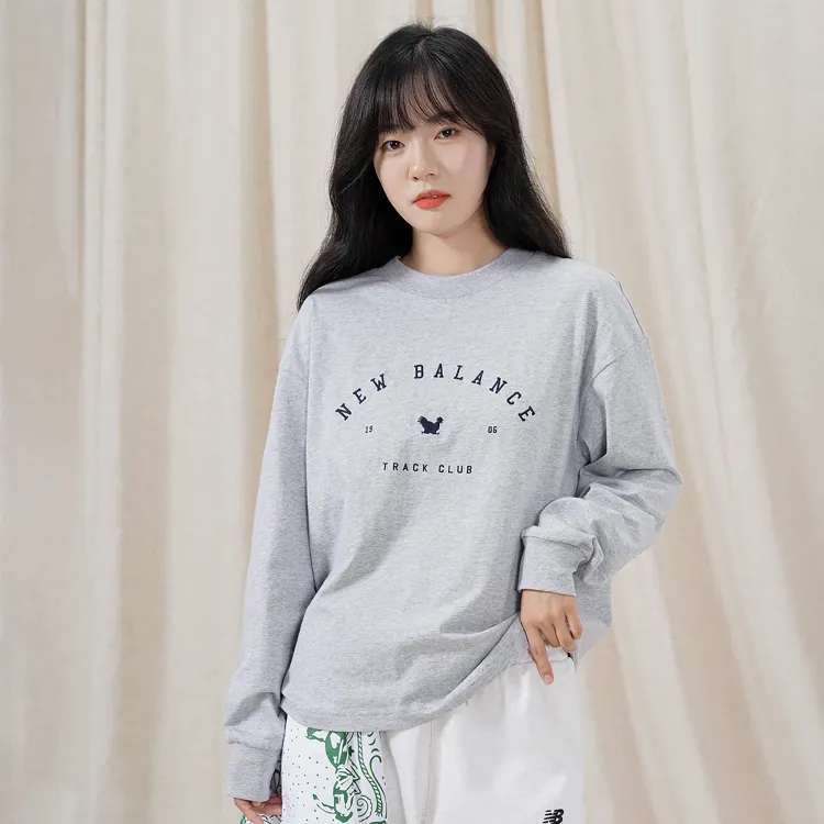 New Balance Т-рубашка с рукавом-трубкой женская светло-серого цвета