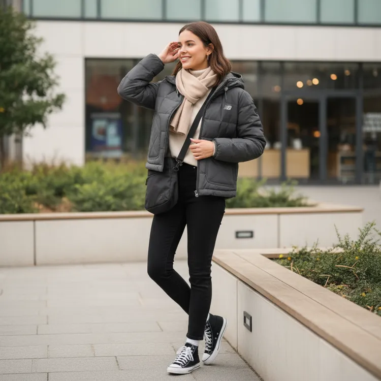 Пуховик с капюшоном HyperSports от New Balance создан специально для женщин. Дизайн с капюшоном не только добавляет стильности, но и обеспечивает дополнительное тепло в холодную погоду. Модель представлена в темно-сером цвете, демонстрируя сдержанную и элегантную эстетику.