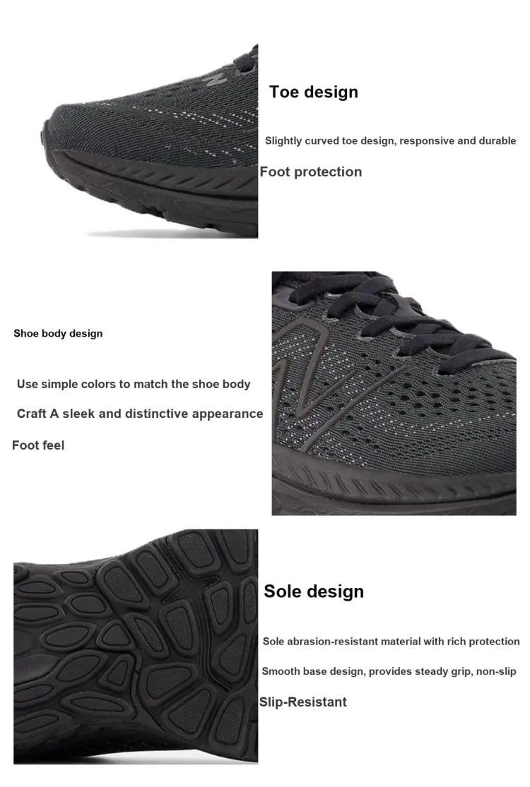 New Balance NB Свежий Foam X 860v13 Амортизация Износостойкий Низкий Топ Детские Беговые Кроссовки Черные Подростки