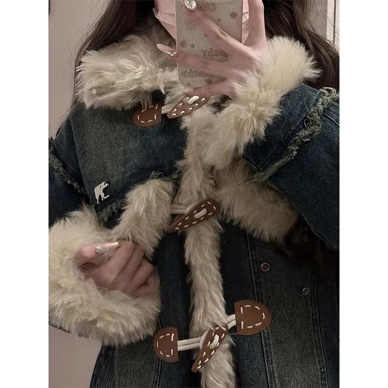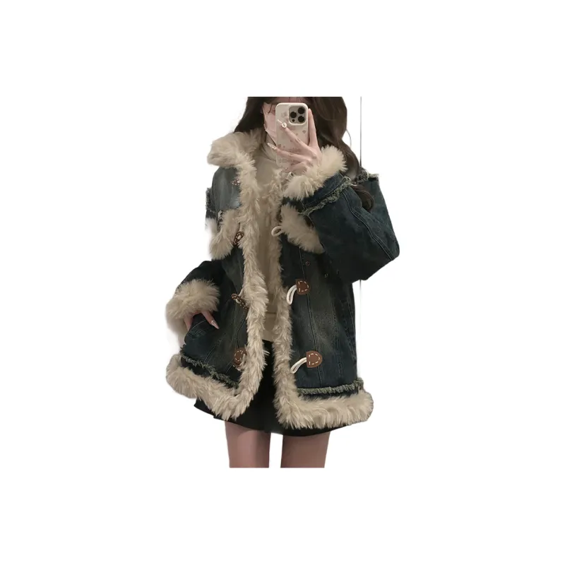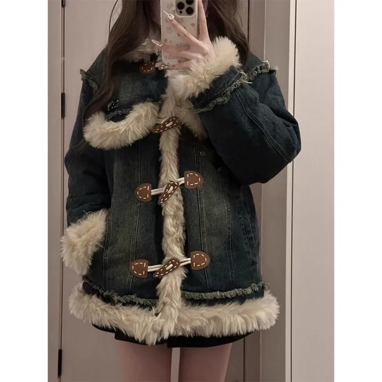 Джинсовый синий [Утолщенный, утепленный, теплоизоляционный] В наличии Прямые волосы