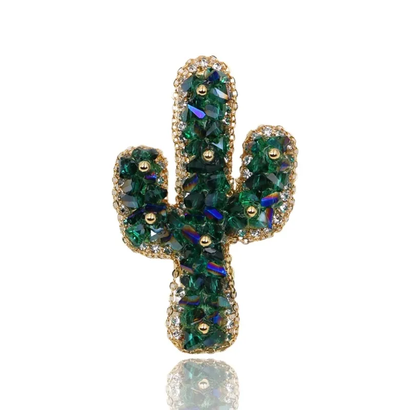 Кристальная брошь в форме кактуса