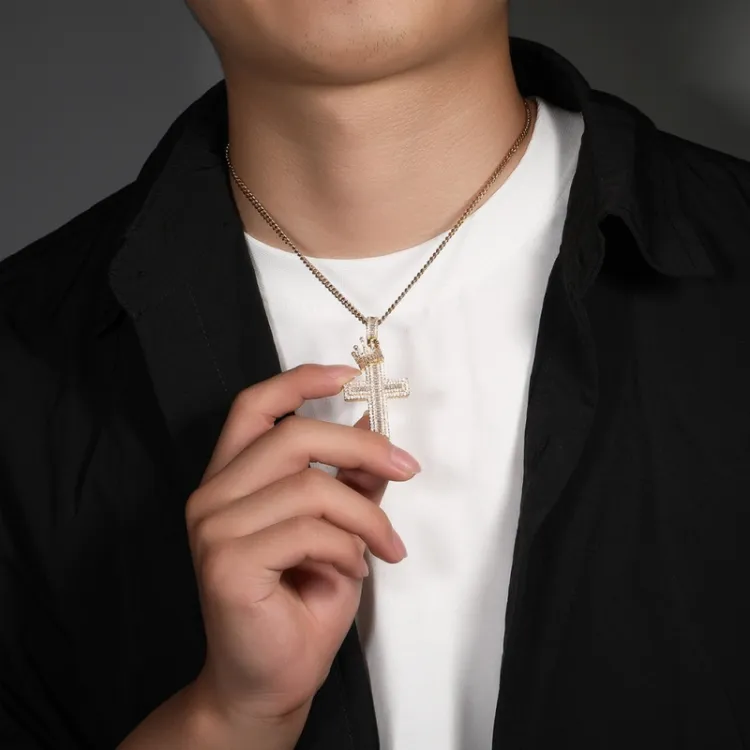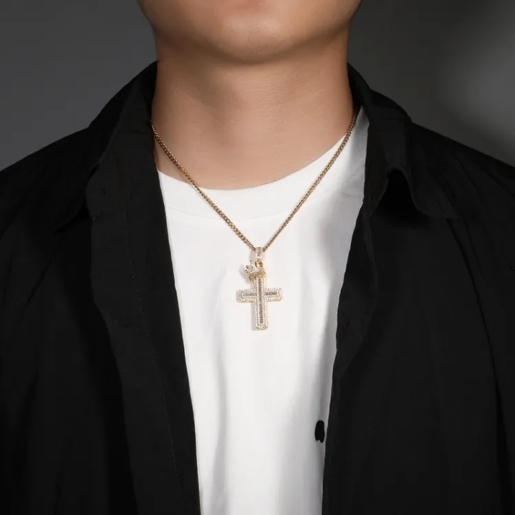 Корона Крест Ожерелье, Серебряный (Кубинская цепь)