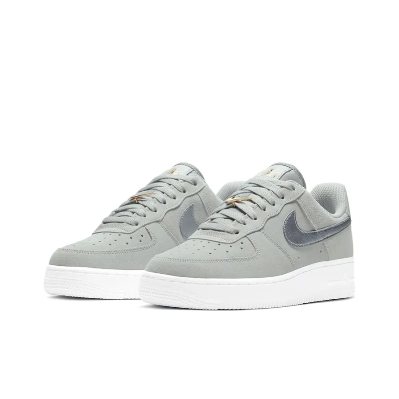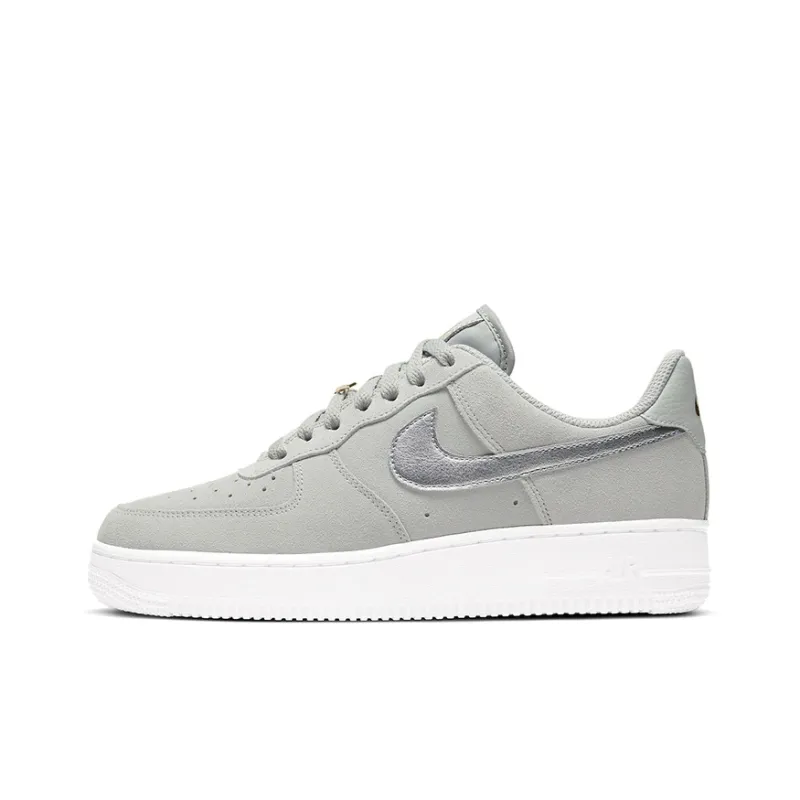Nike Air Force 1 GREY Замша Противоскользящие Устойчивые к истиранию Низкие Скейтбординг Кроссовки Унисекс Серый Золото