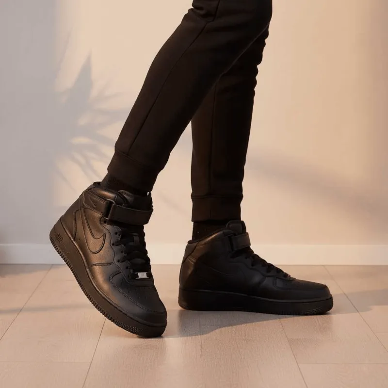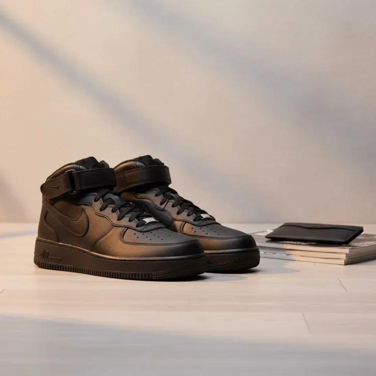 Кроссовки Nike Air Force 1 07 с высотой до середины щиколотки, унисекс. Классический черный цвет делает их универсальными. Верх выполнен из качественных материалов, застежка на липучке обеспечивает удобство надевания и регулировку плотности. Средняя высота обеспечивает лучшую поддержку лодыжки и повышает устойчивость. Простой и стильный дизайн с плавными линиями подходит для различных случаев. Подошва обладает отличной износостойкостью и сцеплением, обеспечивая комфорт при ходьбе. Эти кроссовки подчеркнут индивидуальность и стиль как с повседневной, так и со спортивной одеждой.
