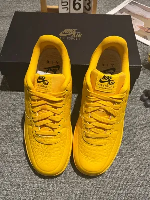 Серия Nike Air Force 1 всегда пользуется большой популярностью. Эти мужские кроссовки с низким голенищем выделяются уникальным дизайном и превосходным качеством. Общая концепция комфорта позволяет ощущать легкость и свободу при ходьбе. Верх выполнен в классическом желтом цвете — ярком и привлекающем внимание, что подчеркивает индивидуальный стиль.