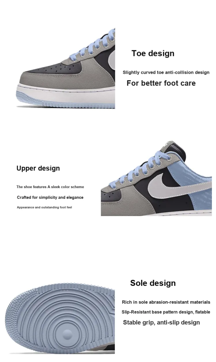 Nike Air Force 1 Low Shock Absorbers Abrasion Resistant Slip Resistant Low Top Скейтбординг Мужской Синий Серый