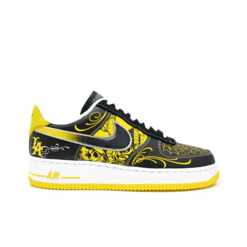 Nike Air Force 1 MR. Мультяшный Livestrong Low Топ Скейтборд Кроссовки Мужские Черные Желтые