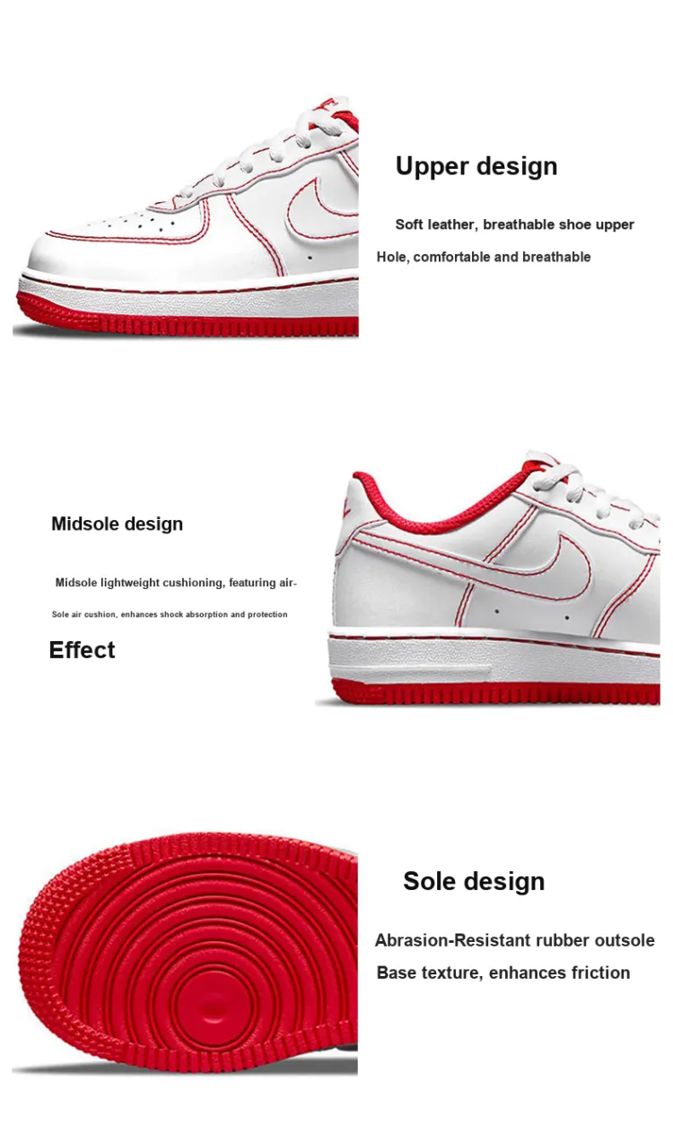 Nike Air Force 1 Low Топ Детские Скейтбординги Белый и красный для детей 3-7 лет