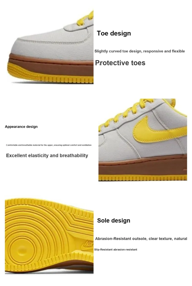 Nike Air Force 1 Low Slip Resistant Abrasion Resistant Low Top Скейтборд Кроссовки Unisex Серый Желтый