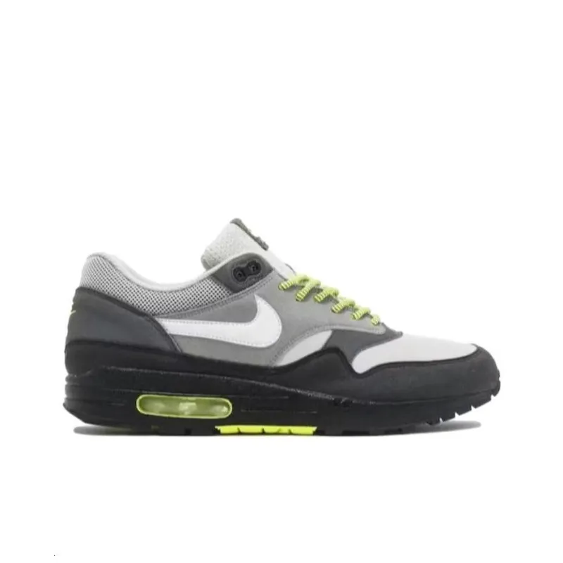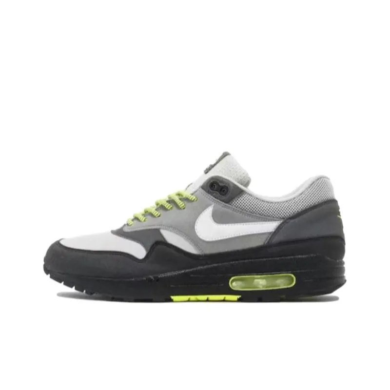 Nike Air Max 1 Амортизация Износостойкий Низкий Топ Беговые кроссовки Унисекс Серый Зеленый