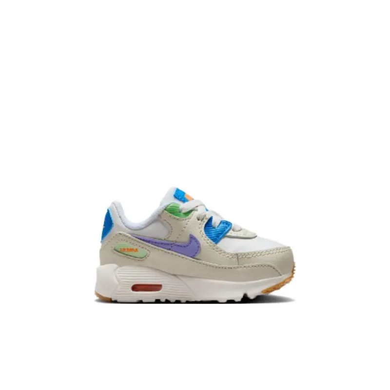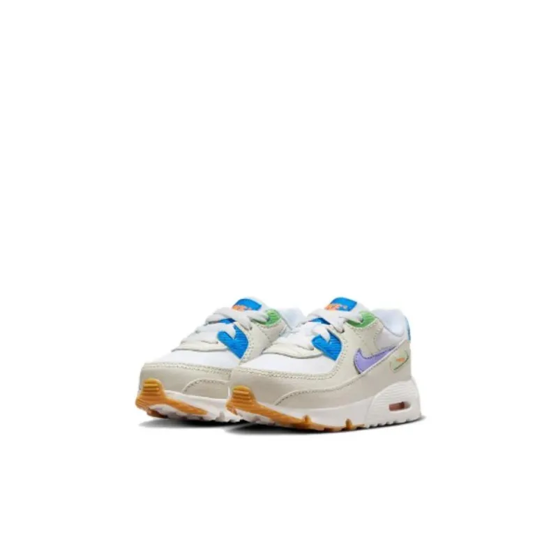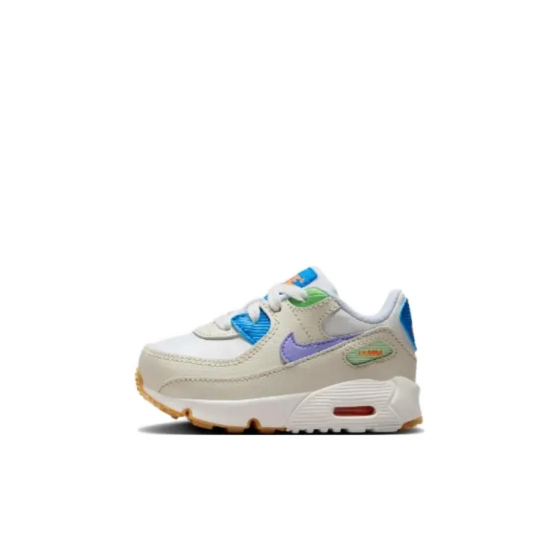 Nike Air Max 90 LTR TD Амортизация Износостойкий Низкий Топ Обувь для малышей Коричневый белый Синий Для младенцев и малышей