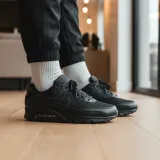 Женские черные кроссовки Nike Air Max 90 с низким голенищем сочетают в себе комфорт и ретро-элементы. Низкий дизайн обеспечивает гибкость движения лодыжки и при этом демонстрирует стильный внешний вид. Ретро-дизайн верха, сочетающий классические линии с современными деталями, создает уникальный шарм. Удобные материалы обеспечивают максимальный комфорт во время бега. Эти кроссовки Nike Air Max 90 идеально подходят как для повседневных пробежек, так и для повседневной носки. Они не только отвечают спортивным потребностям, но и добавляют стиль в образ.