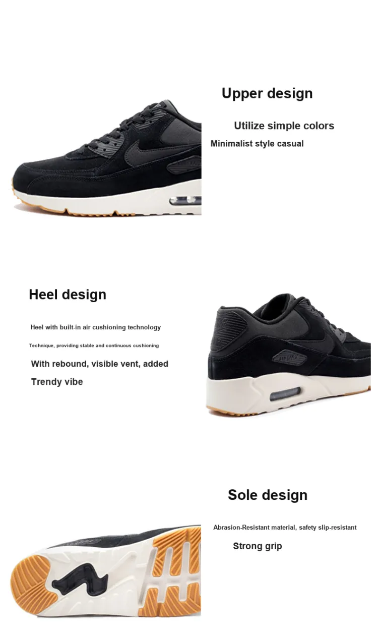 Nike Air Max 90 Low Топ Air Cushion Marathon Беговые кроссовки Мужской Черный Белый