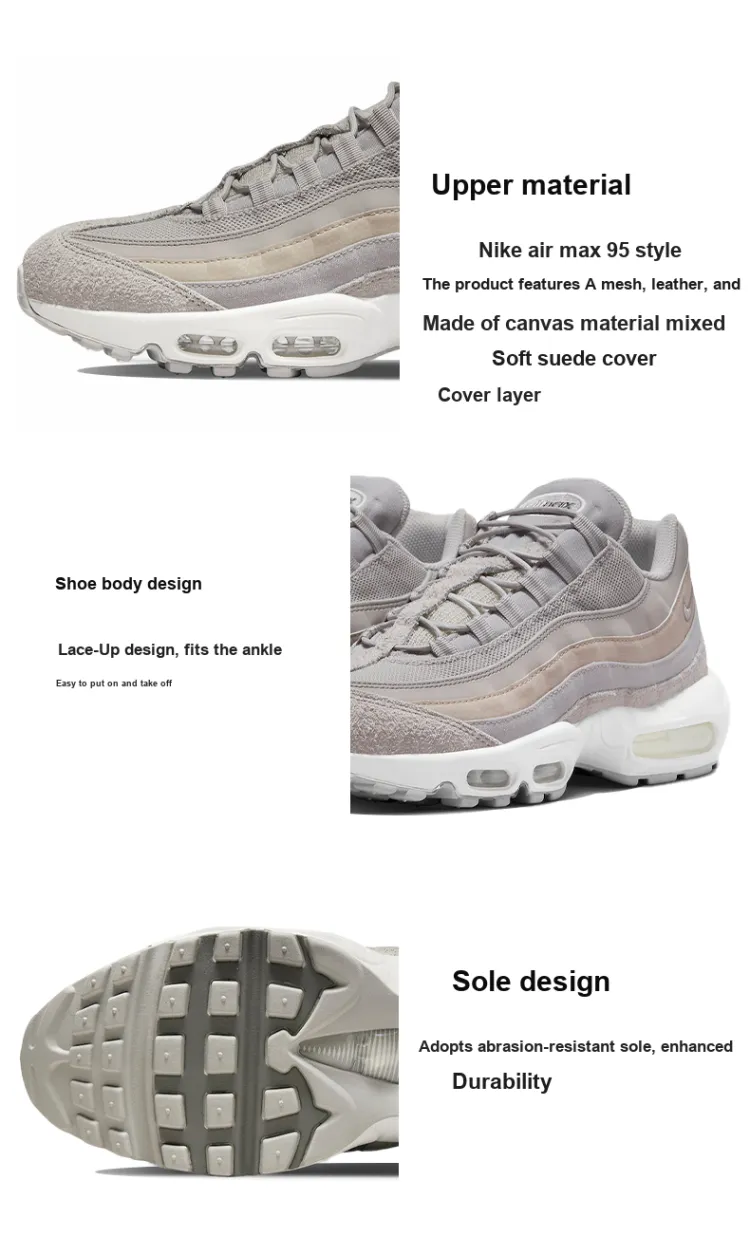Nike Air Max 95 Амортизация Износостойкий Низкий Топ Беговые кроссовки Мужские Серый Розовый