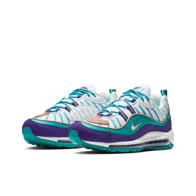 Nike Air Max 98 Ткань Низкие Кроссовки с воздушной подушкой для бега Унисекс Белый Синий Фиолетовый