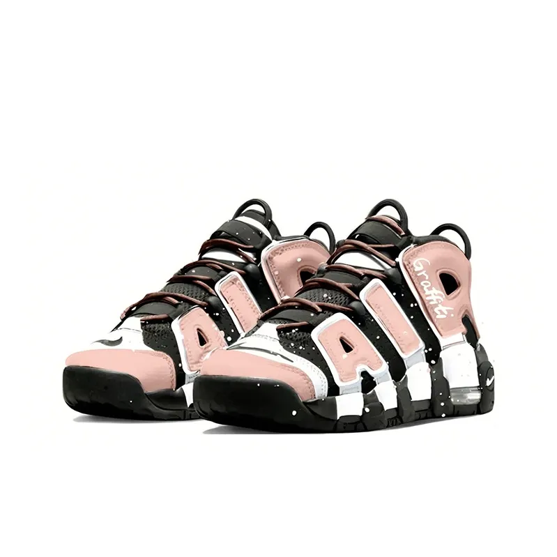 Nike Air More Uptempo Персик Чернила Poetry Амортизация MID Детские баскетбольные кроссовки Черно-розовые для подростков