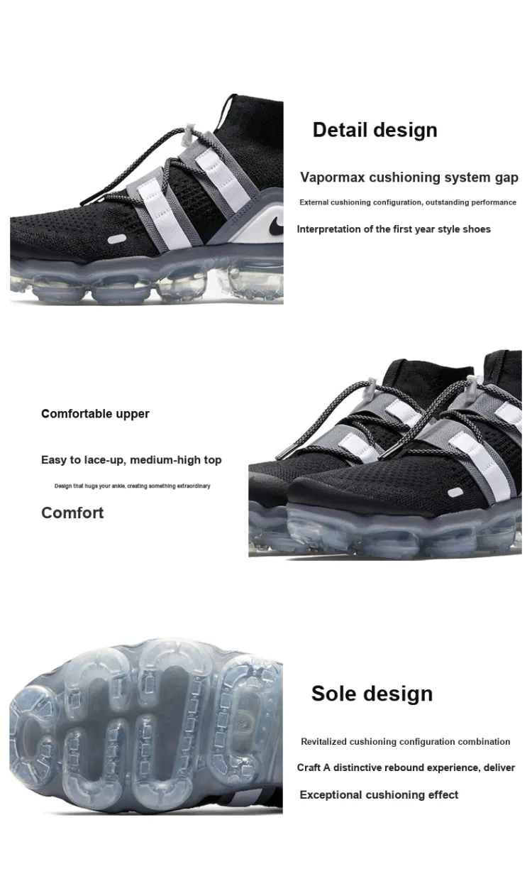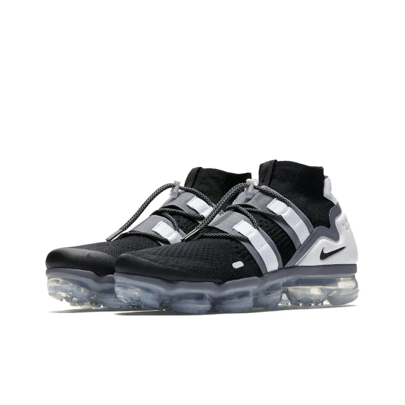 Nike VaporMax Flyknit High Топ Air Cushion Повседневные Беговые кроссовки Унисекс Черный Белый