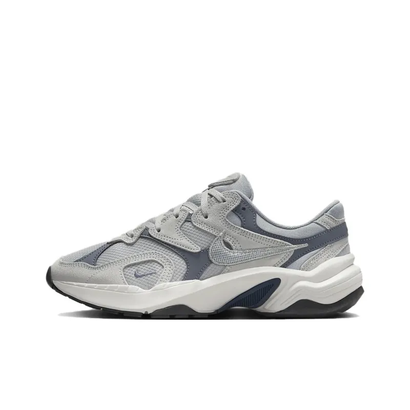 Nike AL8 - женские кроссовки в стиле "папа" с низким верхом, представленные в стильном сером оттенке. Модель отличается уникальным дизайном, идеально сочетающим моду и функциональность.