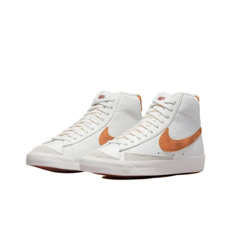Nike Blazer Mid '77 Противоскользящие Устойчивые к износу Легкий MID Скейтборд Кроссовки Мужские Белый Оранжевый