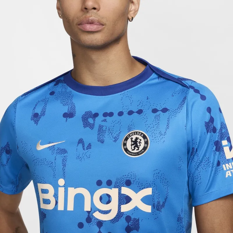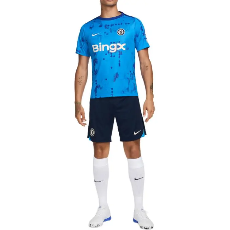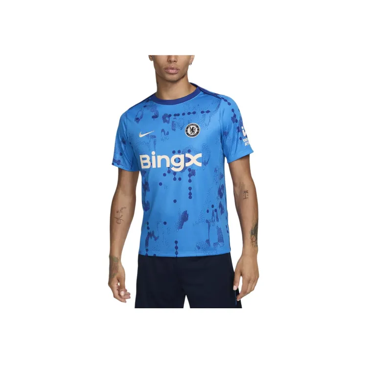 nike Chelsea FCAcademy SS24 Футбол Короткий рукав Предматчевый топ Футбол Джерси Мужской Светло-синий