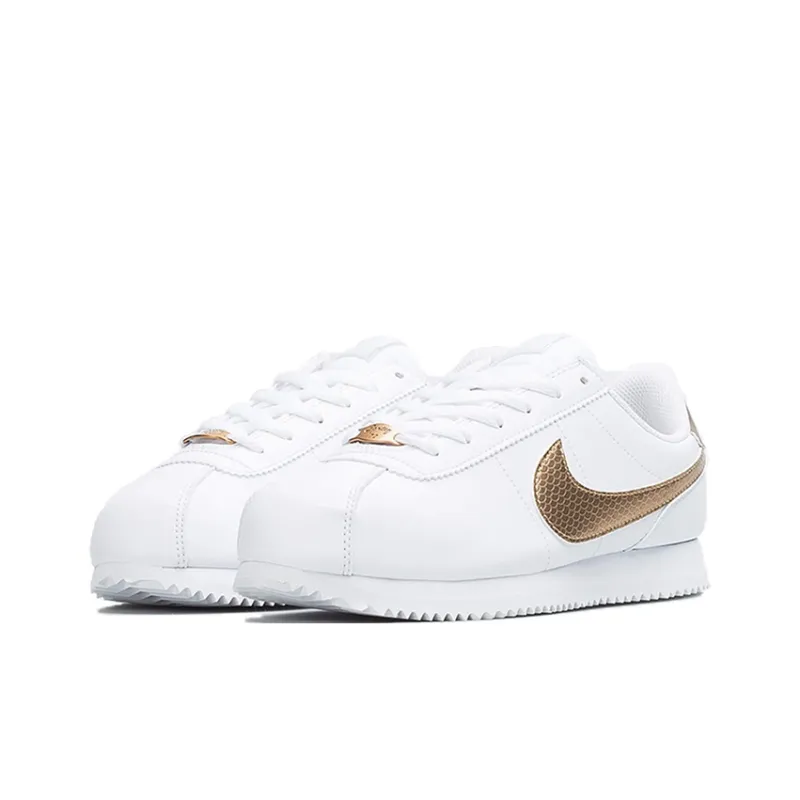 nike Cortez Амортизаторы Shock Slip-resistant Низкие Беговые кроссовки Женские Белые Золотые