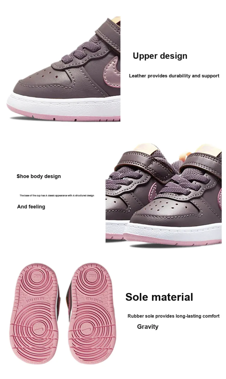 nike Court Borough 2 Амортизация Износостойкий Низкий Топ Обувь для малышей Розово-фиолетовый Infant And Toddler