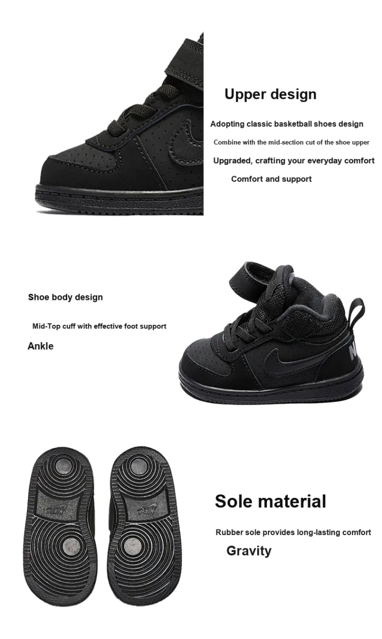 Nike Court Borough MID Противоскользящий Устойчивый к истиранию MID Топ Обувь для малышей Черный Infant And Toddler