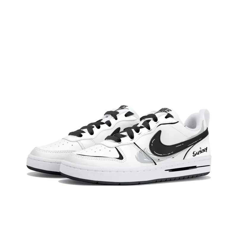 Nike Court Borough Sunny Wind Graffiti Низкий Топ Детские Скейтбординги Черный Белый Серый Подростки