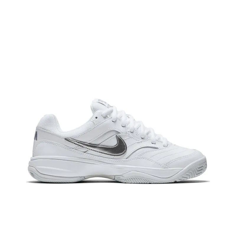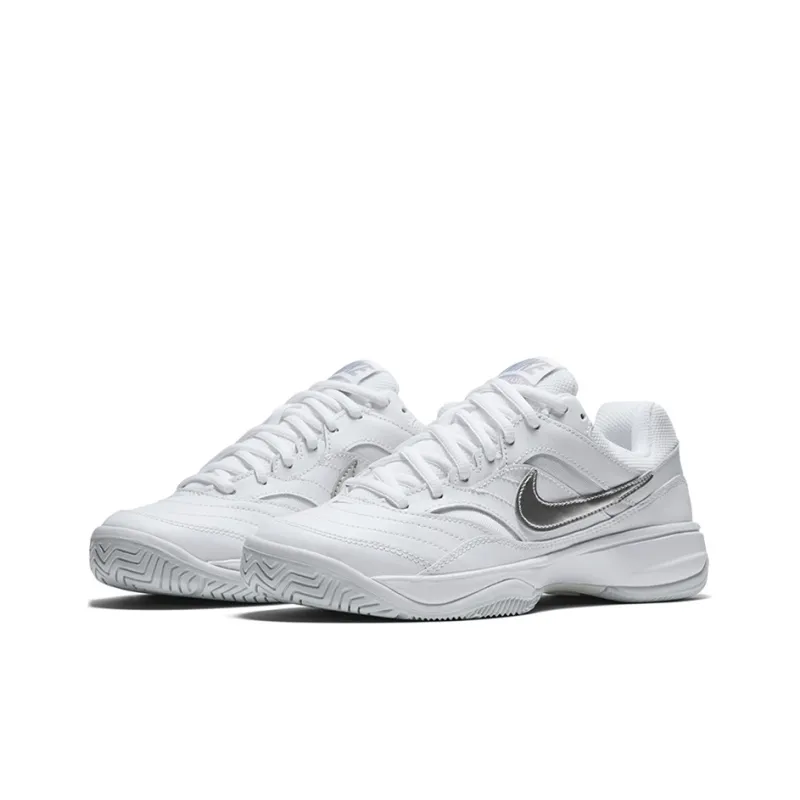 Nike Court Lite Амортизаторы Шок Устойчивые к Износу Низкий Топ Кроссовки для Тениса Женские Белые Серебряные