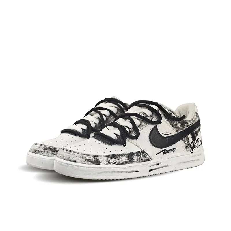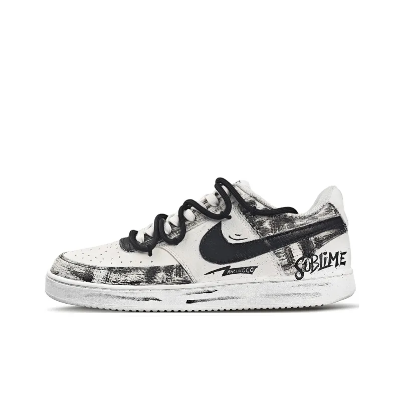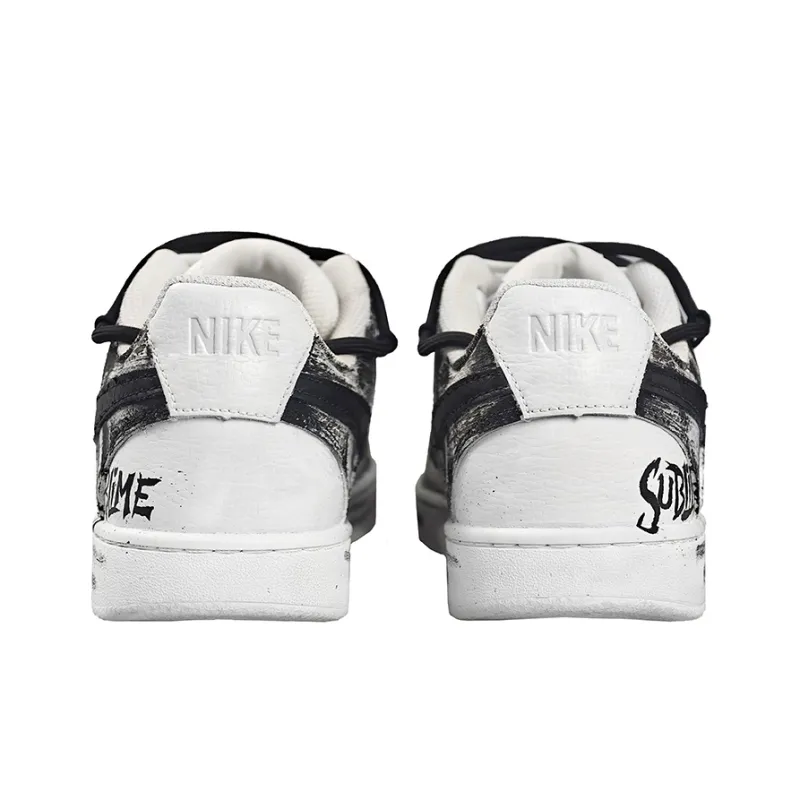 Nike Court Vision Wild Graffiti Низкие Скейтбординг Кроссовки Мужские Черно-Белые