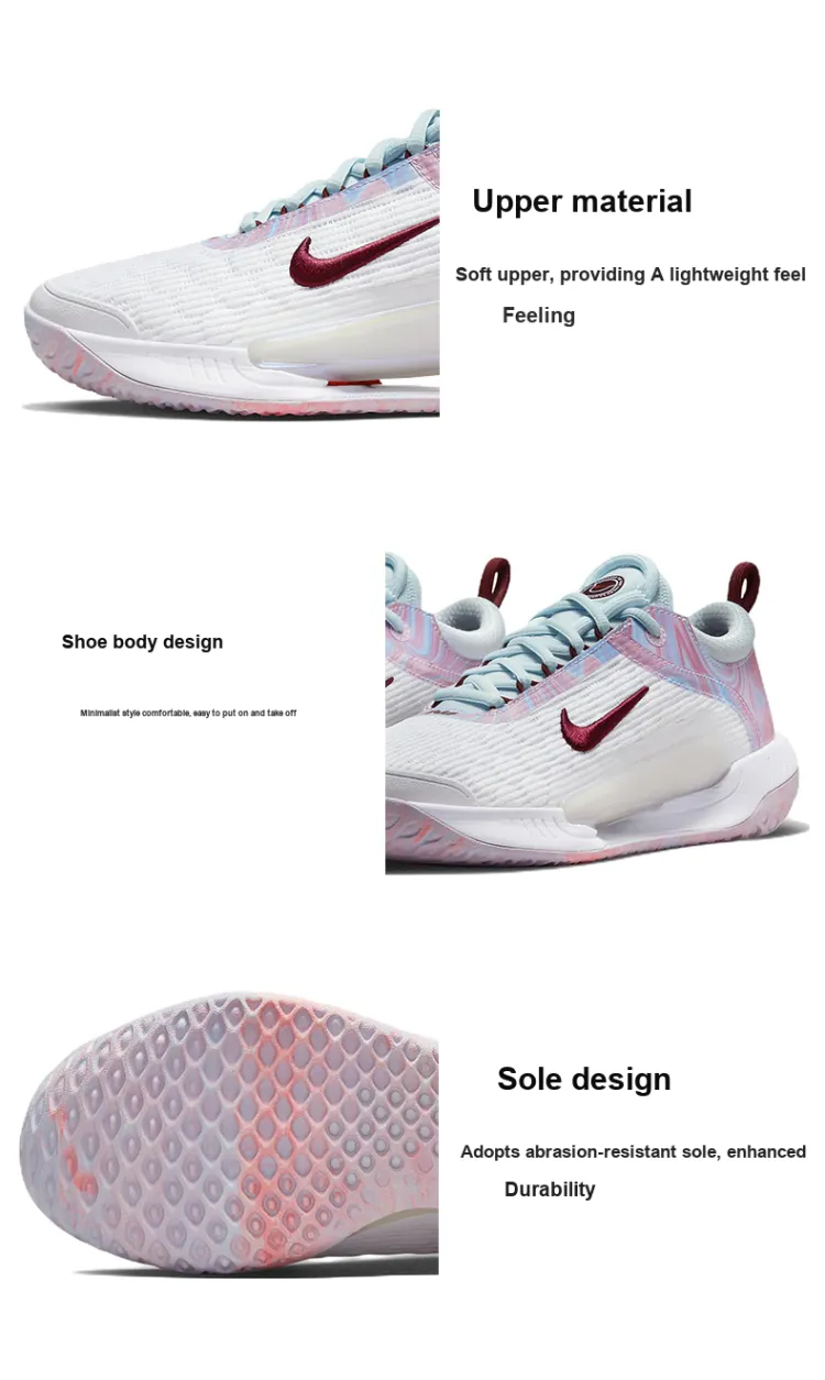 nike Court Zoom NXT Амортизаторы Shock Slip-resistant Abrasion-resistant Низкий топ Кроссовки для тенниса Женские Белые Красно-розовые