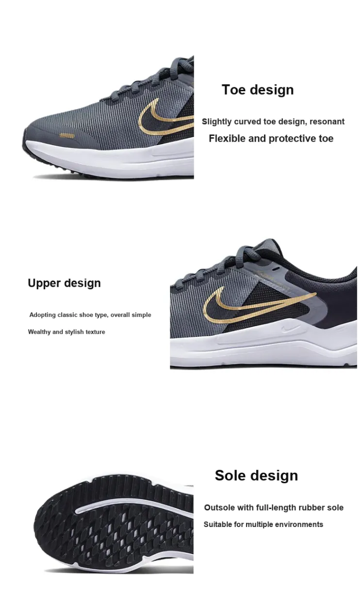 Nike Downshifter 12 Дышащие Низкие Беговые Кроссовки GS Серый Белый Черный