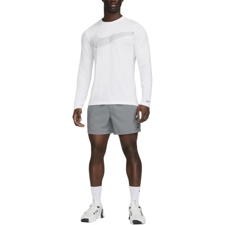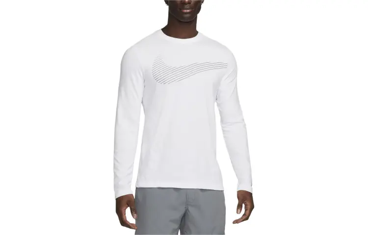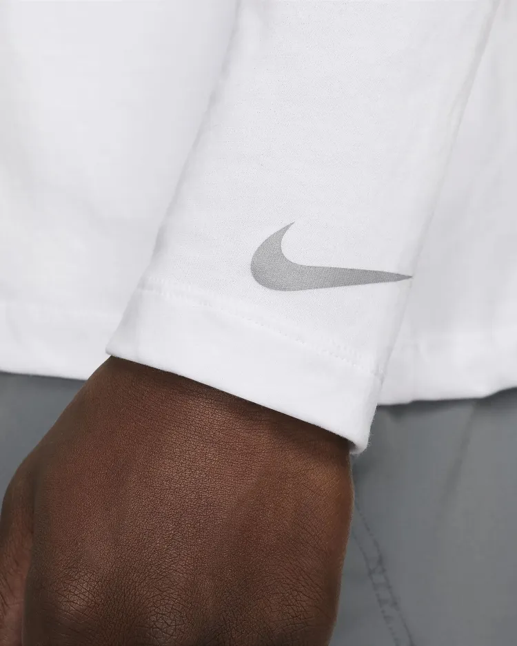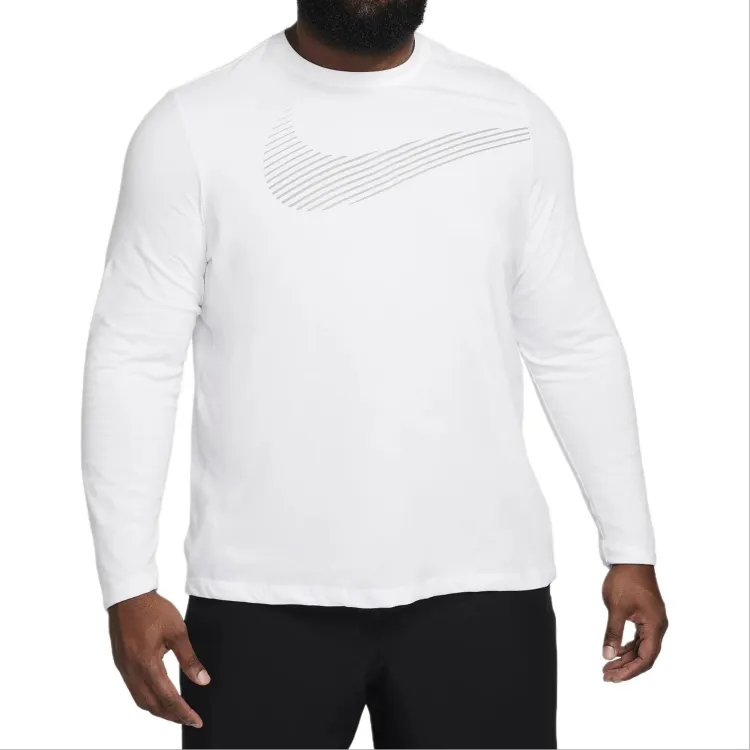 nike Dri FIT Long Sleeve Фитнес T-Рубашка T-Рубашка Мужская Белая