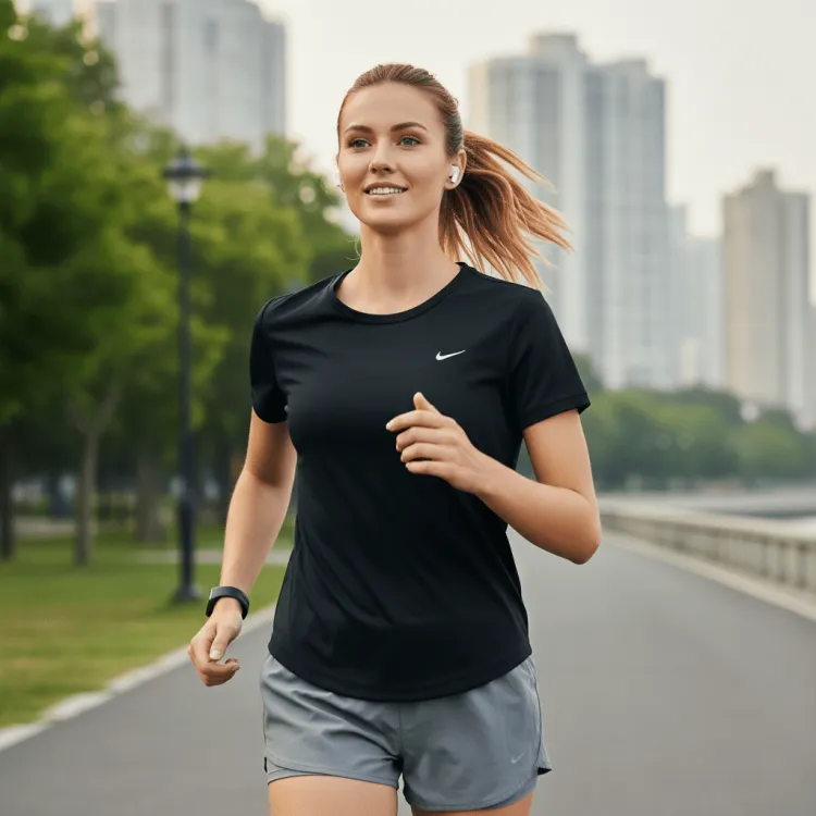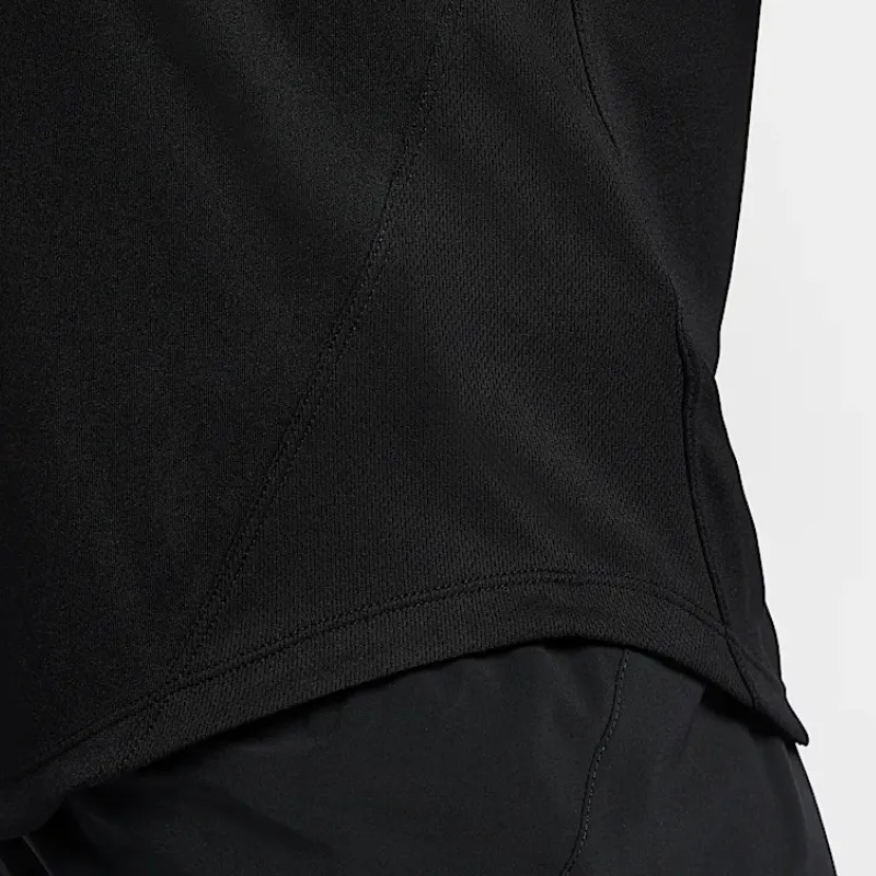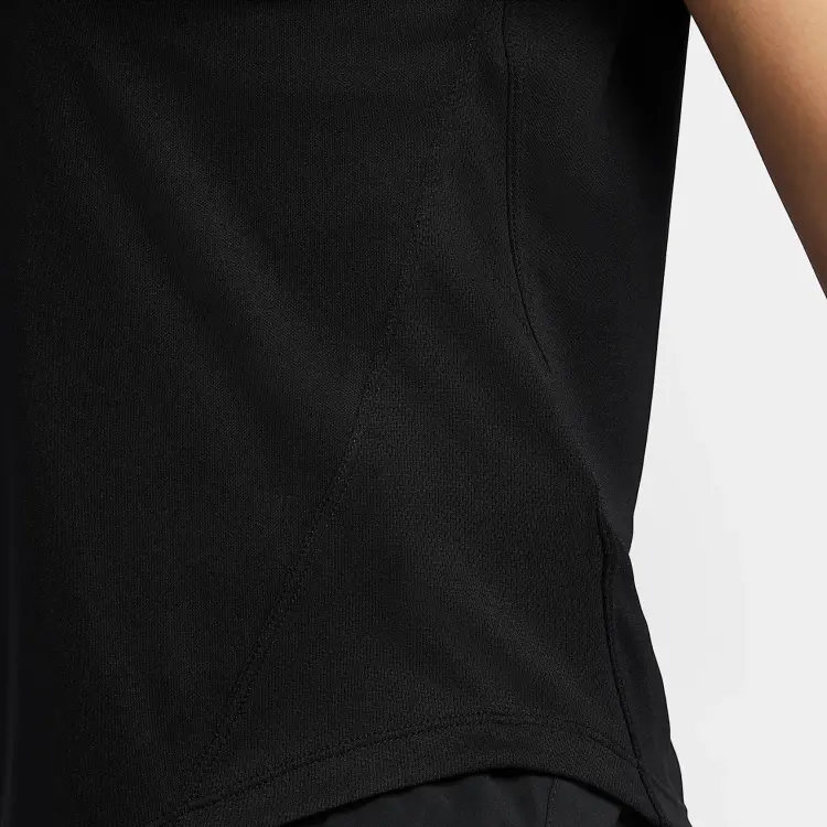 Эта женская футболка Nike Dri-Fit tempo представлена в классическом черном цвете. Используемая ткань обладает дышащими и быстросохнущими свойствами, что позволяет сохранять ощущение свежести и комфорта во время тренировок или повседневной активности, эффективно отводя пот и предотвращая дискомфорт от его скопления. Кроме того, ткань отличается износостойкостью — даже после многократного ношения и стирок она сохраняет свои качества и не подвержена истиранию. Материал также обладает высокой мягкостью, обеспечивая максимальный комфорт при контакте с кожей без каких-либо неприятных ощущений. Эта футболка идеально подходит для аэробных тренировок, занятий фитнесом или повседневной носки, демонстрируя превосходное качество и инновационный дизайн Nike в области спортивной одежды.