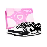 Nike Dunk Бамбук Тень Милый медведь Устойчивый к истиранию Низкий топ Скейтборд Кроссовки Унисекс Черный белый