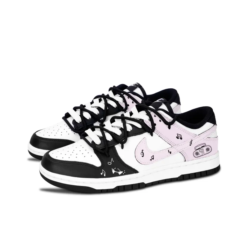 Nike Dunk Черный Белый Веселье Нота Устойчивый к абразиву Низкий Топ Скейтборд Кроссовки Унисекс Черный Розовый