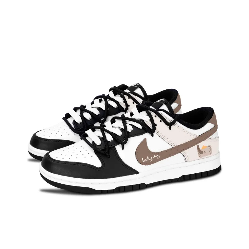 Nike Dunk Черный Белый Мягкий Слон Устойчивый к истиранию Низкий Топ Скейтборд Кроссовки Унисекс Коричневый