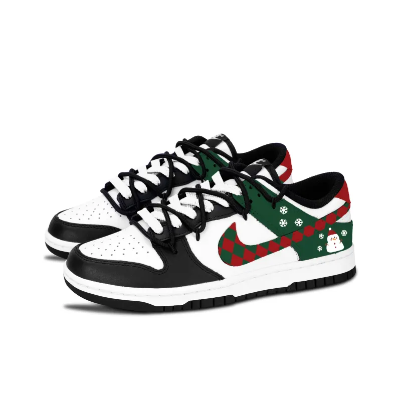 Nike Dunk Черный Белый Зимний Снеговик Устойчивый к истиранию Низкий Топ Скейтборд Кроссовки Унисекс Красный Зеленый