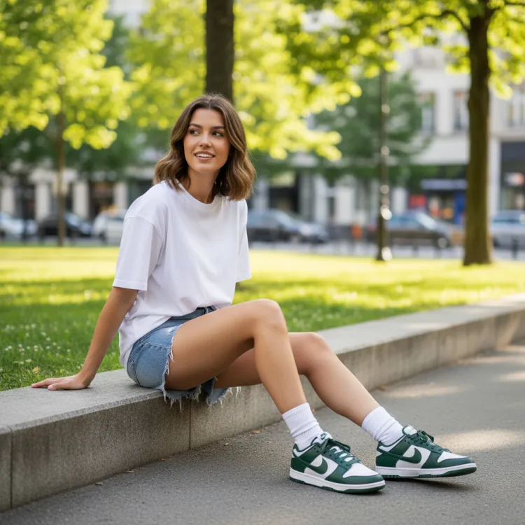 Зеленые акценты на языке, шнурках и логотипе Swoosh добавляют яркие детали, усиливая модный характер модели. Эта унисекс-модель подходит как мужчинам, так и женщинам, позволяя каждому выразить индивидуальность.