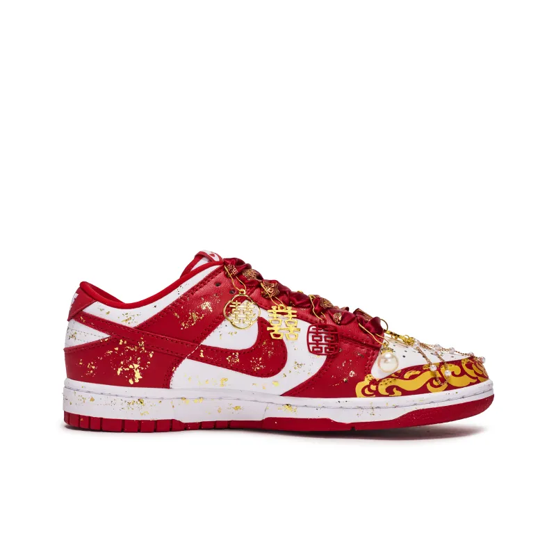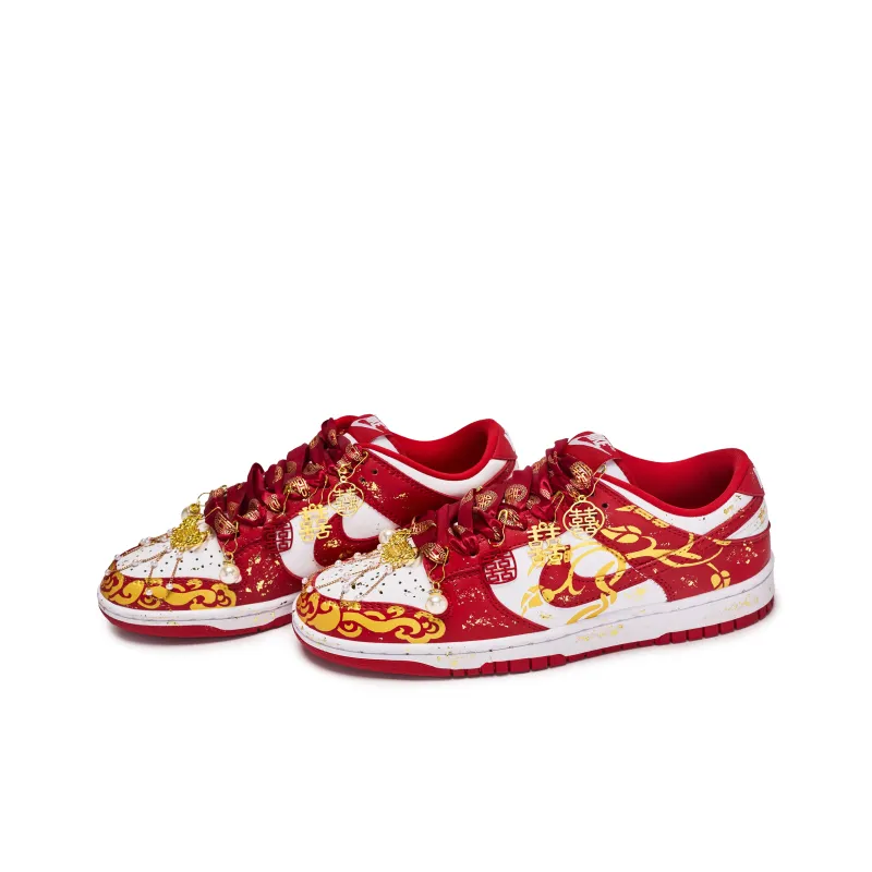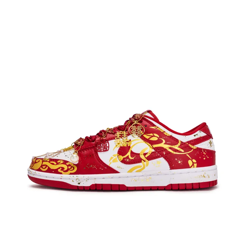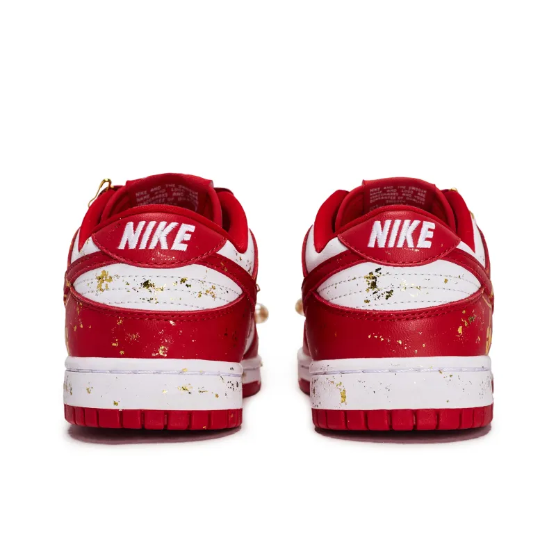 Nike Dunk Low Ретро Устойчивые к истиранию Низкие Скейтборд Кроссовки Унисекс Красный Белый Золото