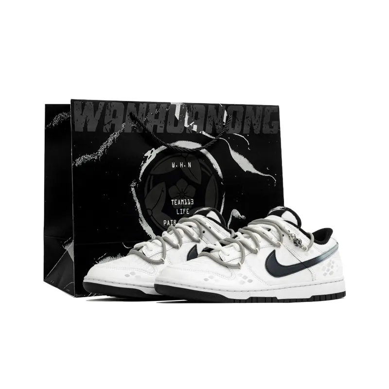 Nike Dunk Wan HUA Nong Bai Ze Shopping Bag Abrasion Resistant Low Top Skateboard Shoes Unisex White Gray
