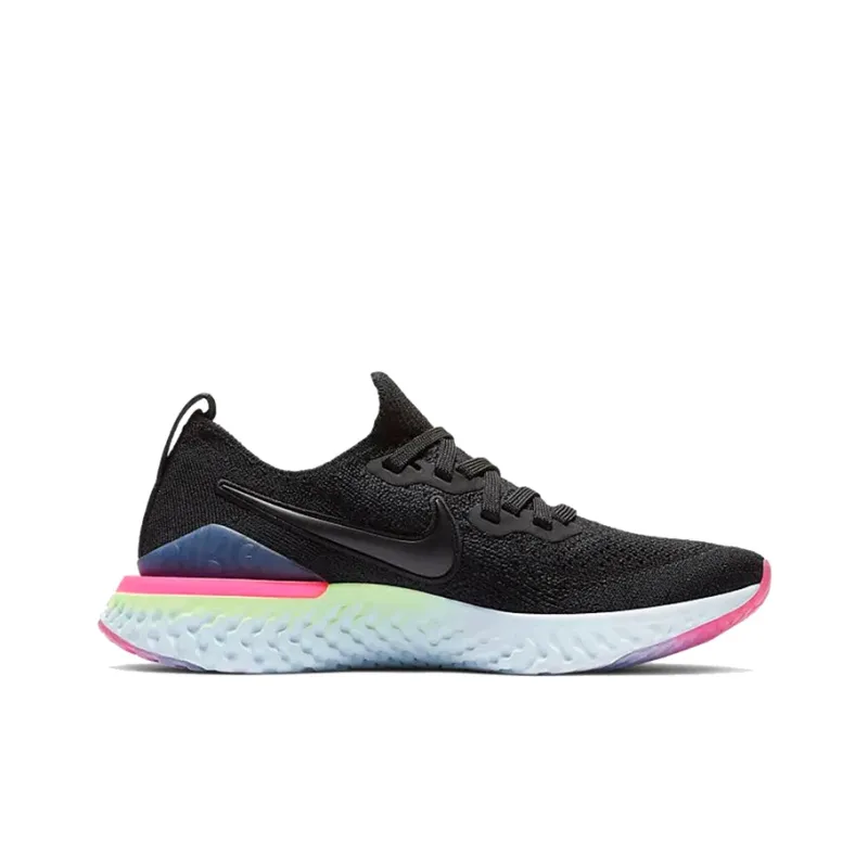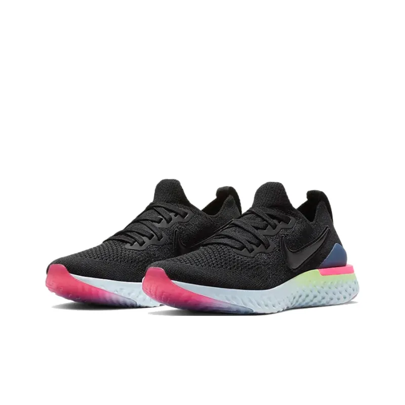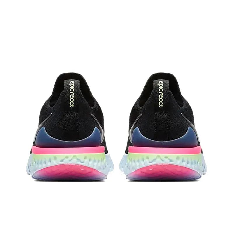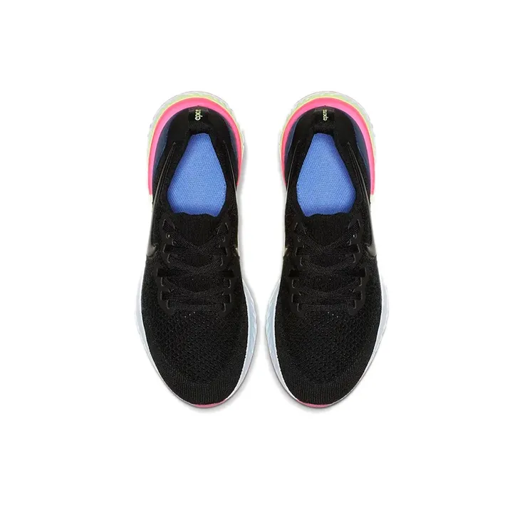 Nike Epic React Flyknit 2 Нескользящий Легкий Низкий Топ Марафон Беговые Кроссовки Женские Черный Синий