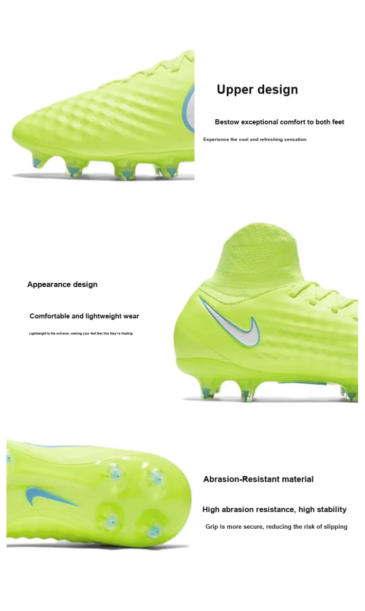 nike FG Твердый грунт Амортизаторы Shock Absorbers Противоскользящие Устойчивые к истиранию Футбольные бутсы Мужские Неоново-желтый
